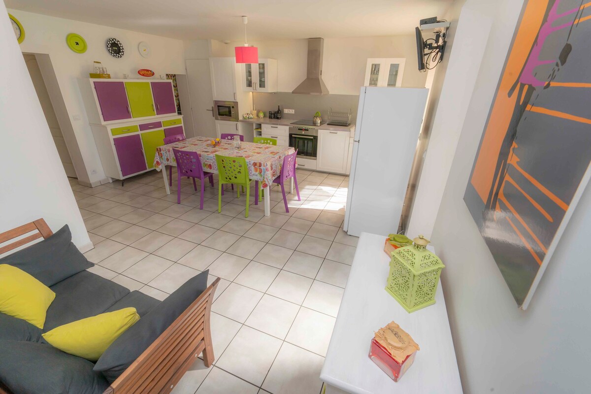 Gîte idéal pour les amoureux de la nature à proximité du Lac d'Aydat et sur le GR30 ! A l’automne, sorcières et citrouilles viennent compléter l’ambiance magique de la saison 🎃 Le gîte est le prolongement de notre maison (partie de droite sur les photos). Nous accueillons également des voyageurs/randonneurs (printemps/ été) dans 2 chambres indépendantes a l'opposé de la propriété. Pièce de vie ouverte avec cuisine et coin salon ; 2 chambres avec leur SDE, une terrasse privée sous pergolas.