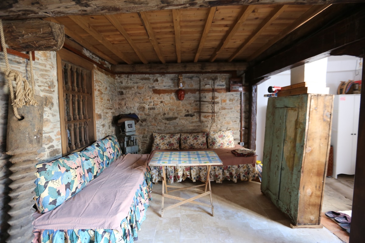 A 200 years old, two floor house. There is a stone wall living room downstairs. 2 double bedroom and one single bedroom is situated on the second floor along with bathroom and a hall way. The house is looking to the famous Şirince village from like a tophill and yet all the amenities of the village is in short walk distance. U r entering the house through a garden. U can as well enjoy the serenity of our garden and benefit our mostly home made beverages that we serve at our cafe