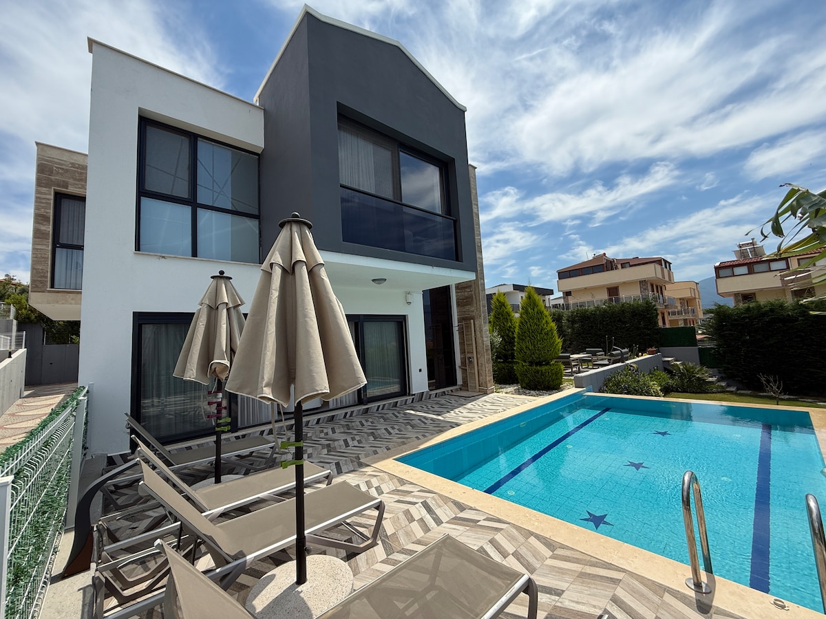 Efeler Mahallesinde Lüx Sıfır 4+1 3 katlı tripleks villamız Full eşyalı kiralıktır. Özel Bahçeli ve 30 m2 geniş deniz manzaralı teras 4 Yatak Odası ve 1 Açık Mutfak Salon 3 WC + 2 Banyo (1 Ebeveyn Banyo) Bütün odalarda ve salonda klima ve sineklik mevcuttur. 8 kişi ve daha fazla kişiye yetecek kadar mutfak malzemeleri, Bulaşık Makinesi, Çamaşır Makinesi, Ankastre Fırın, Ocak, Termosifon, Mikrodalga, Buzdolabı, Tost Makinesi, Kahve Makinesi, Kettle, Ütü ve Fön makinesi