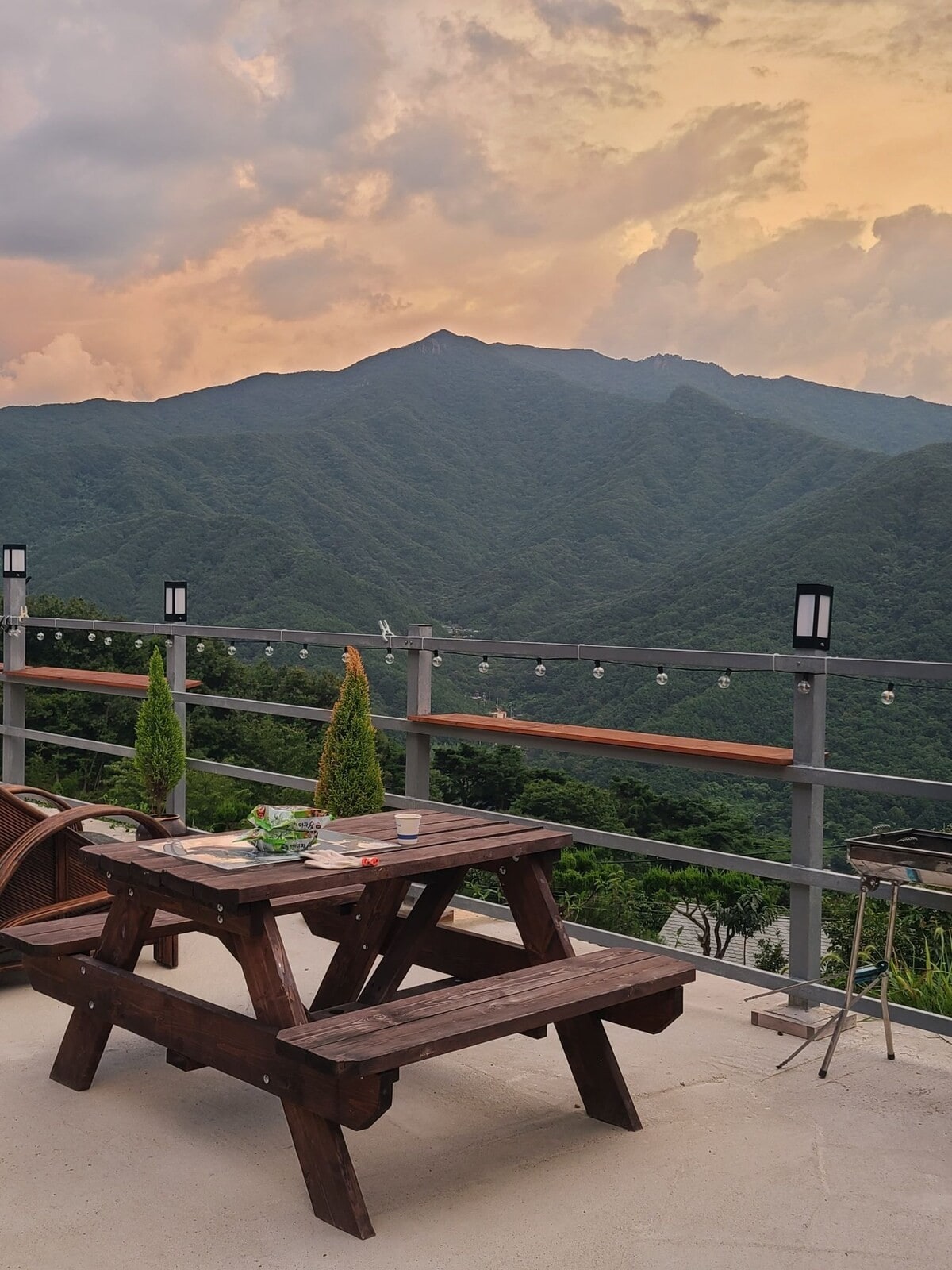 지리산근처(사니조아펜션(초록창) 함양로61) 해발500m (만이천평 도로인접 진입로포장)신축원룸형단독 독채이며 뷰가좋은집입니다 기본2인 (1인추가2만원) 반려동물동반불가 지리산lC 5분 함양lC 15분 지리산(백무동 추성계곡 뱀사골 ) 15분 지리산 노고단성삼재휴게소30분 농협하나로마트3분 촌캉스하기에 딱이며 지리산 둘레길 2,3코스 인접 대봉산 모노레일, 집라인 함양 상림공원 지리산 계곡 하미앙 와인밸리 지리산 허브밸리 등 즐기러 오세요 국도에 인접해 있으며 산전체 만이천평 울타리가 설치되어 있고 산봉우리 둘레로 산책로가 있고 산봉우리에서 봐라본 산 풍광은 4계절내내 색다른 모습으로 뷰를 감상할수있어요 가마솥 참자나장작구이 불멍 촌캉스하기에 적합한곳입니다 일상에 지친분들이 오셔서 힐링하세요 테마식 독채4동을 운영하고 있으니 지인 가족들 모임하실분들은 추가로 다른독채 예약 가능합니다 (추가요금 당일결제가능)