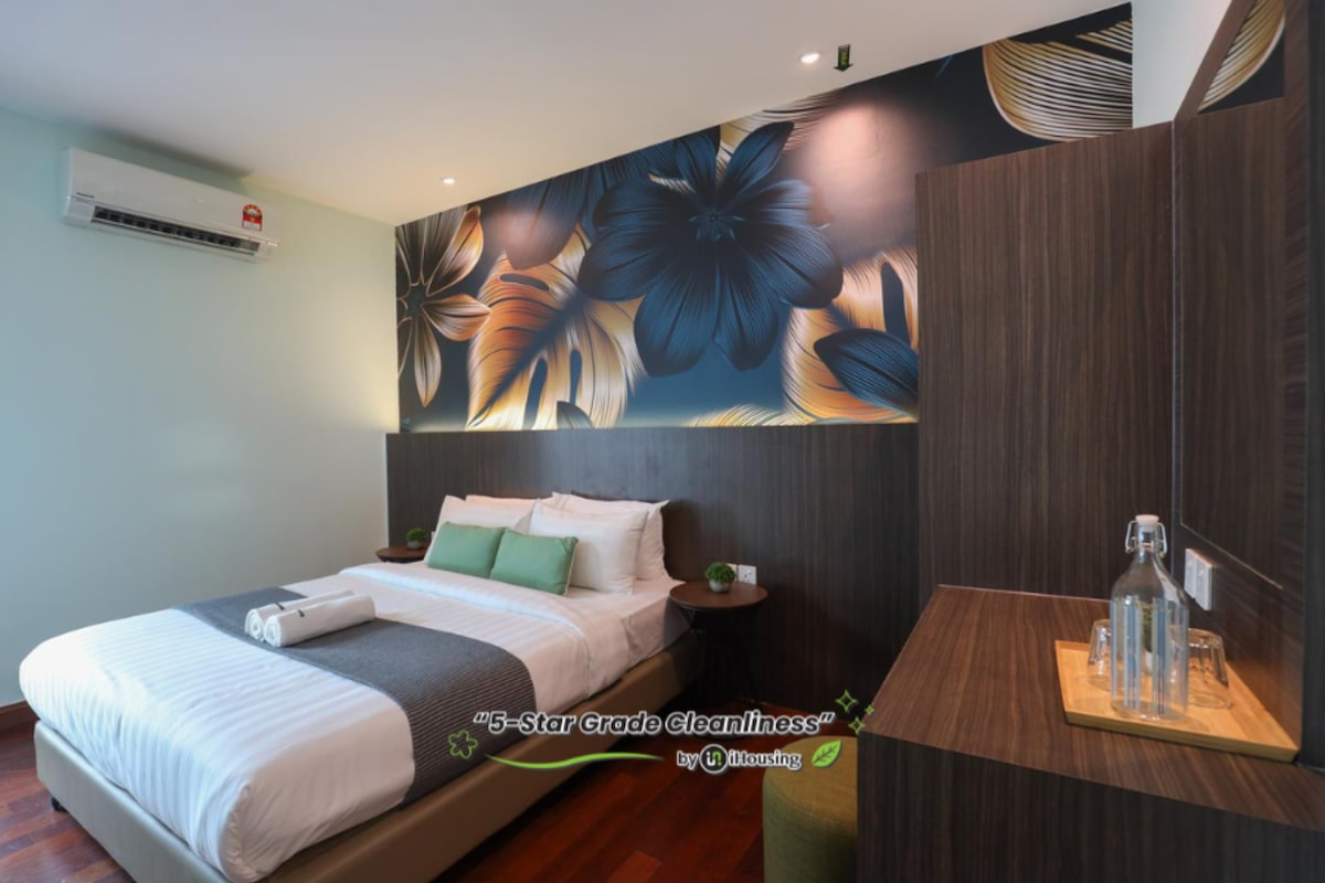 💎 Trevor Hotel | 5-Star Cleanliness | Monstera Mural Why Choose us? ♛ 5-Star Hygiene: Professional, strict cleaning SOPs for a pristine stay ♛ We stand by our work with a 100% service guarantee and priority on-site support from 9 AM to 12 AM! ♛ Diverse Stays: Options ranging from cozy apartments to large family homes ♛ Exclusive Perks: Free Digital Melaka Guide — top dining, hidden gems & guest discounts ♛ Virtual Tours: Search "i Housing" on social media to see our room videos