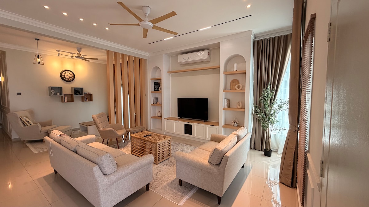Welcome to Retreats Villa, a luxury private pool villa in Melaka designed for guests who want both comfort and fun. This high-end villa is perfect for families, friends, celebrations and group staycations looking for a premium experience. Enjoy your own private pool by day, then turn up the vibe at night in our Crazy KTV entertainment room – sing, chill and create unforgettable memories together, all within the privacy of your villa. deposit RM1000 will collect when check in.