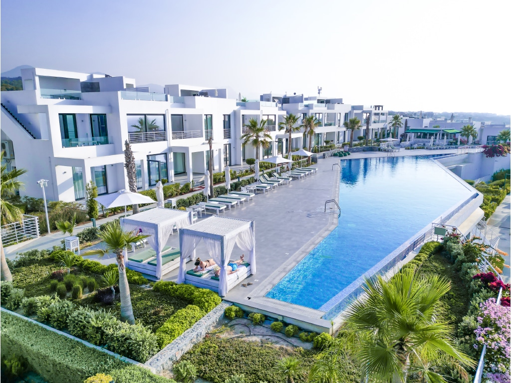 Modern 3+1 Duplex Villa with Private Pool – Mikonos Seaside Complex, Esentepe Just steps from the Mediterranean Sea, this stylish and modern three-bedroom villa offers a peaceful and luxurious stay with a private pool and beautiful views of the sea and mountains. Located within the prestigious Mikonos Seaside Complex, it provides shared facilities such as swimming pools, gym, spa, and 24-hour security — an ideal choice for families and groups seeking comfort, privacy, and seaside relaxation.