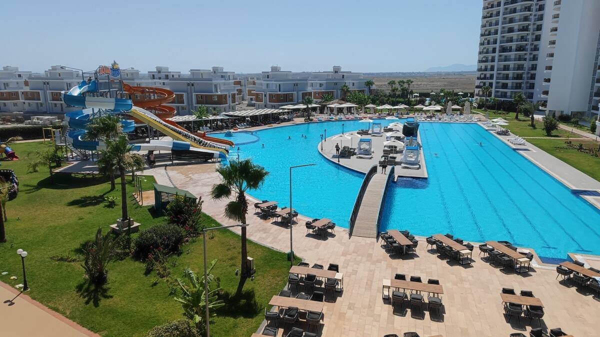 This exceptional front line beach apartment is designed and finished to the highest specification. Comprising of 2 bedrooms, 2 bathrooms, one of which is en-suite. Positioned on the beautiful 'Golden Sandy' side of the island. The sandy beach is just eight steps from your private terrace/garden. The sea is only 50 metres away, great for an early morning swim! You can access to the state-of-the-art GYM, indoor pool, spa, Caesar Blue AQUA PARK and all swimming pools! (Ts & Cs apply)