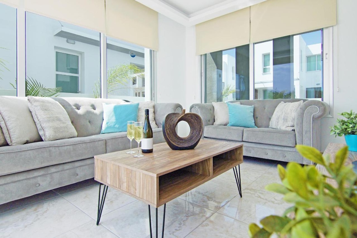 ☆☆☆ Your vacation home and/or office in sunshine☆☆ Tranquil 2 bedroom apartment, Kyklades BC6, free wifi, dishwasher in Kapparis is located JUST 700M FROM THE BEACH, in a very friendly and secure complex with 2 LARGE POOLS and more amenities. Our home will be your safe home for your vacations or your office in sunshine!!! We give so much attention to cleanness and safety! The location will be also a great surprise as it is so near to everything but at the same time in a very quite neighborhood.