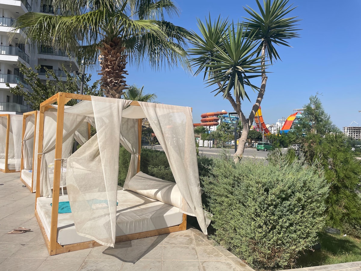 Beautiful apartments in a top family complex in Northern Cyprus! 🏖️ Enjoy 15 pools, an aqua park, kids’ playground, BBQ zones and restaurants. Just a short walk to the famous Long Beach, close to casinos, sports bars and karaoke. On-site you’ll find a market, bike & scooter rentals, fitness club, saunas and hammam. Guests have access to a wellness center, SPA, massage and ice baths. Perfect for 2 adults and a child, ensuring a relaxing and fun vacation by the sea. 🌴