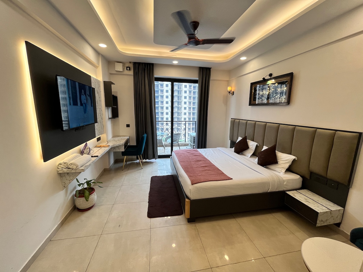Step into your own luxe & cozy 1RK Red Flag Opéra Luxe, perfectly located opposite Phoenix Pallasio Mall in Lucknow. Designed for comfort and style, this studio is ideal for couples, business travelers, and short stays looking for a premium yet homely vibe.