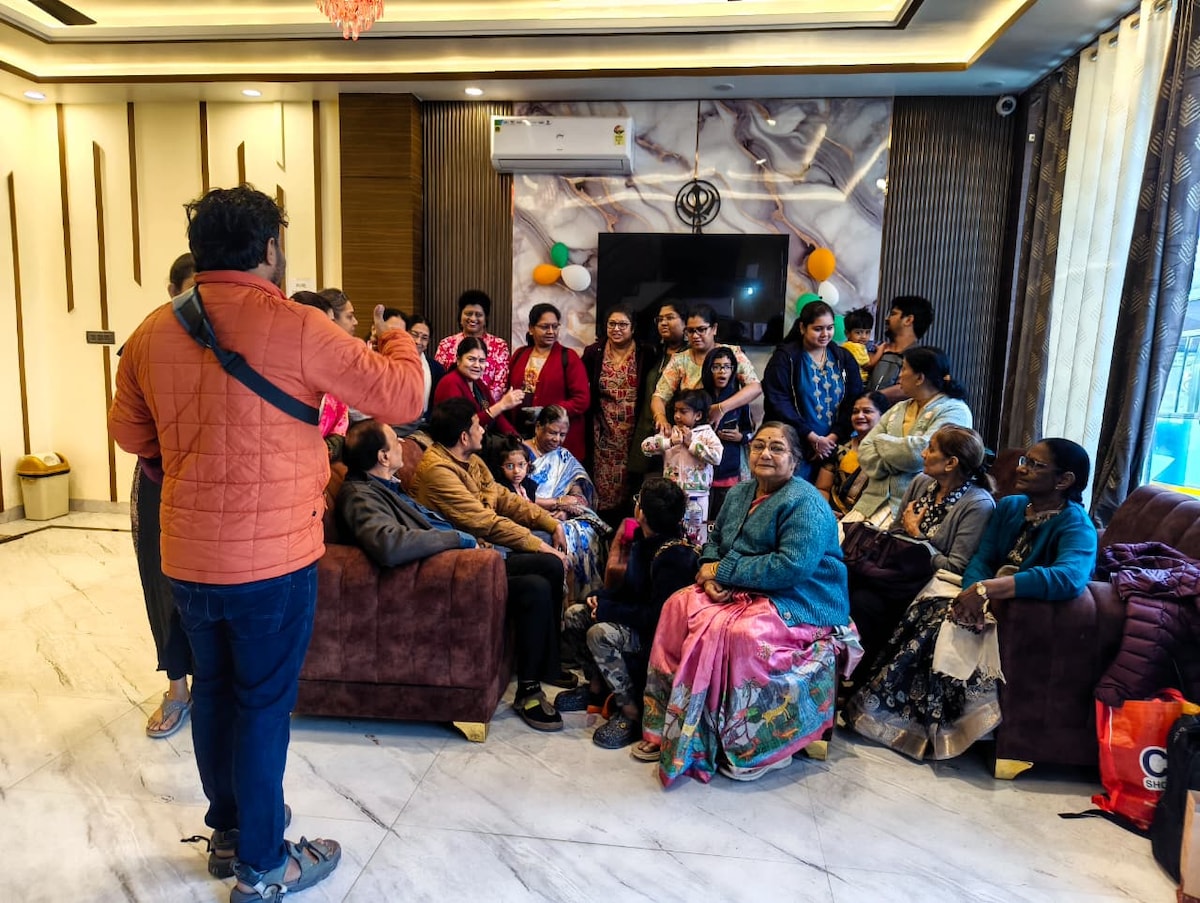 Indoor Pool for year-round fun Pool Table & game corner for endless entertainment Balcony with stunning city views Bonfire experience available on request (payable) Full kitchen access + meals on demand (payable) Prime location: 20 mins from Airport & Railway, 10 mins from Ekana Stadium & Phoenix Palassio Mall Close to Lucknow’s best Mughlai food — Dastarkhwan, Naushijan & Tunday Kababi.