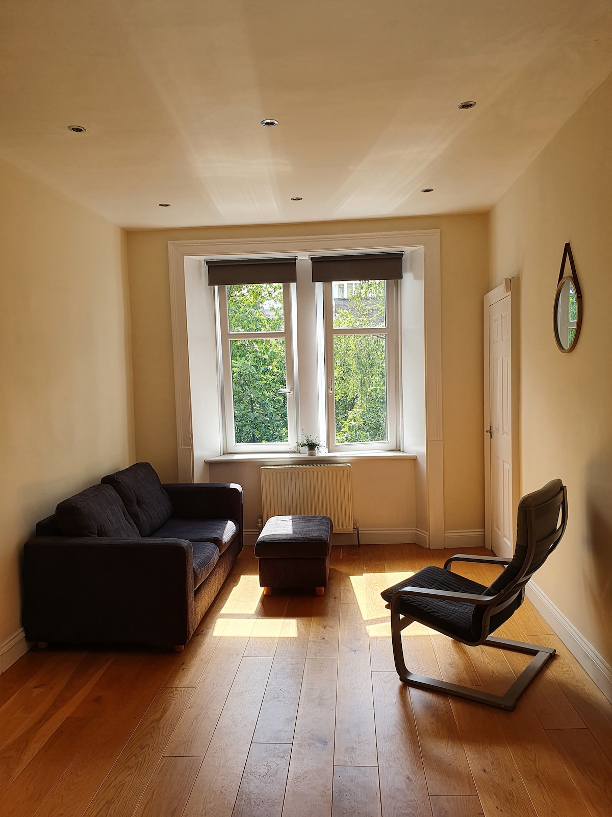 Wyatt House is a glorious Victorian three storey town house with tower, located in the heart of Broomhill. Great train links to Glasgow City Centre, Edinburgh, Helensburgh, SECC and Hydro. By car it's two minutes from M8 and 10 minute from Glasgow airport. In Broomhill there are lovely restaurants, cafes and shops. Slightly further afield, but still within walking distance, are Byres Road, Glasgow Uni, Ashton lane and the Botanic Gardens. Fabulous for any visit to Glasgow