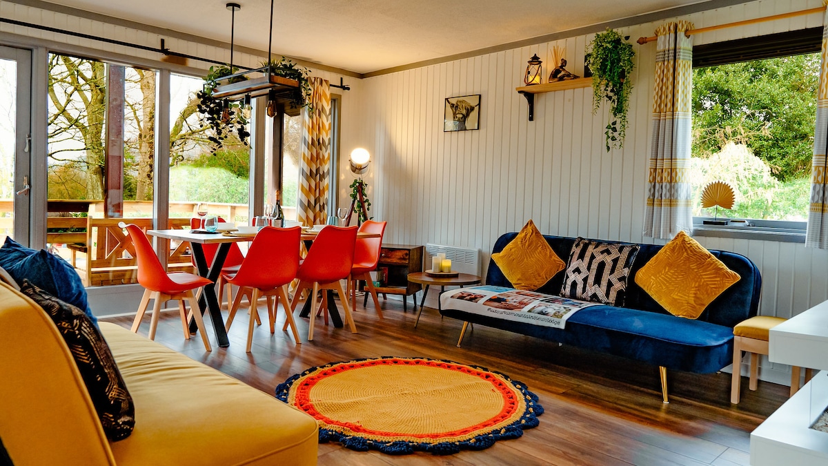 Escape to our charming two-bedroom lodge, perfect for families or couples looking to relax and unwind. Tucked away at the end of the park, you'll enjoy peace, privacy, and stunning natural surroundings. The lodge features a fully equipped brand-new kitchen, stylish decor throughout, and a spacious deck with a hammock – perfect for morning coffee or evening stargazing. Whether you're cooking a homemade meal or exploring the nearby nature trails, this is your perfect getaway spot.