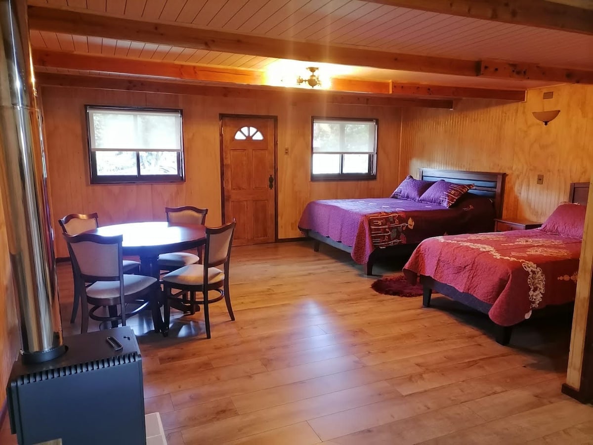Funcionamos bajo el concepto de contact less y self chkin. La cabaña se entrega con ropa de cama, sabanas de baño, amenities, papel higiénico y leña. Hay vajilla y utensilios de cocina para 8 personas. Se cuenta con terraza, kayak para paseos en la bahía, parrillas para asado y un hot tub. La parrilla se debe pagar por cada uso. El Hot Tub se debe pagar por cada uso de 2 horas y no es de uso exclusivo ya que otros pasajeros pueden usarlo en el dia.