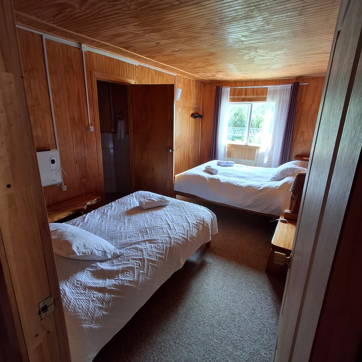 Habitación con baño privado. Ideal para el descanso, el alojamiento incluye desayuno y wifi. Construido con maderas nobles de Mañío decorado de manera rustica, una casona estilo campestre invita a los viajeros a disfrutar de sus confortables y acogedoras habitaciones. Reserva pronto; quedan pocas fechas disponibles. Te esperamos.