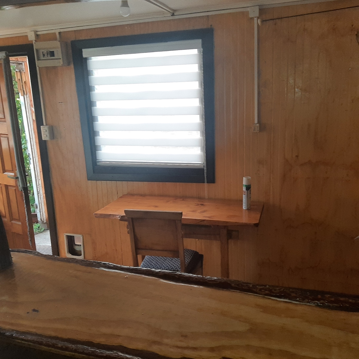 Hermosa cabaña -Martín Pescador- de madera tejuela de 55 mts2 con 2 habitaciones, una con cama matrimonial de 2 plazas y otra con cama plaza y media más cama nido de una plaza. Calefacción con radiador eléctrico y adicional calefacción a Pellet central. Amplio baño con lavadora incluida. Cocina equipada y Frigobar. Excelente construcción con aislación térmica, piso de madera y todos los ventanales en Termopanel. Opción de un excelente desayuno por $7.500 pesos chilenos p/p.