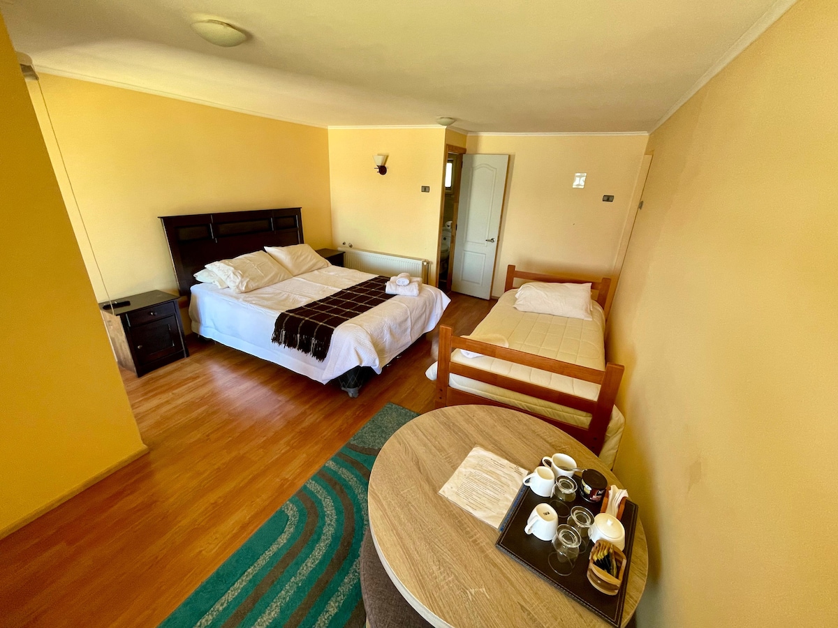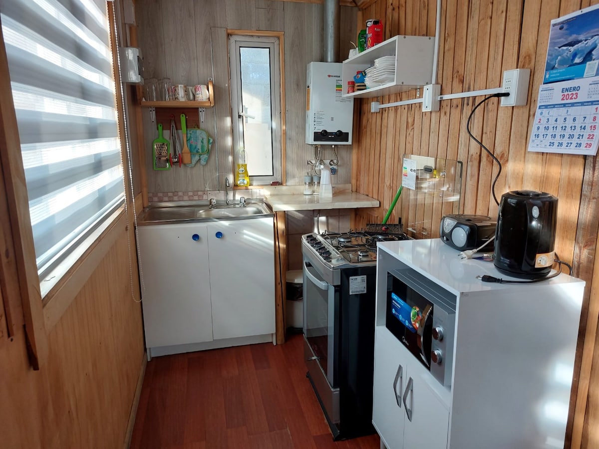 Ubicada en Puerto Río Tranquilo, en un lugar céntrico, cercano a negocios, plaza, servicios turísticos, terminal de buses y a una cuadra del Lago General Carrera. El departamento es de un ambiente, con una capacidad para dos personas y cuenta con: Baño privado (secador de pelo, jabón, toallas, papel higiénico y agua caliente), Cama de dos plazas, NO cuenta con cocina, sin embargo, existe un espacio donde hay lavaplatos, loza, servicio, microonda, frigobar, tostador eléctrico y hervidor.