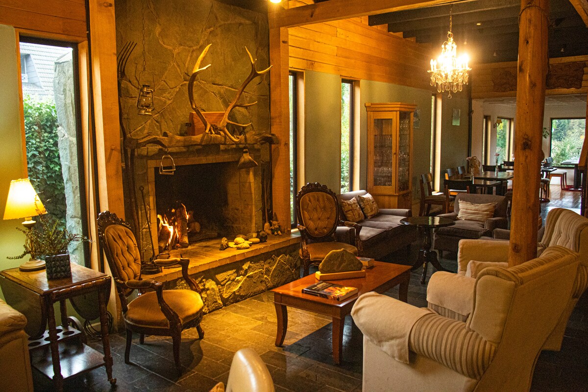 Auténtico espíritu patagónico a cada uno de nuestros huéspedes. Nuestras instalaciones están impregnadas de la esencia de la Patagonia, con maderas nativas, elementos y símbolos regionales, y una impresionante vista del mítico Cerro Cinchao. Explora nuestro hotel y descubre rincones mágicos, como nuestro jardín con árboles frutales y panorámica vista al río Coyhaique. Siéntete como en casa en nuestros acogedores espacios, ideales para trabajar o simplemente relajarte