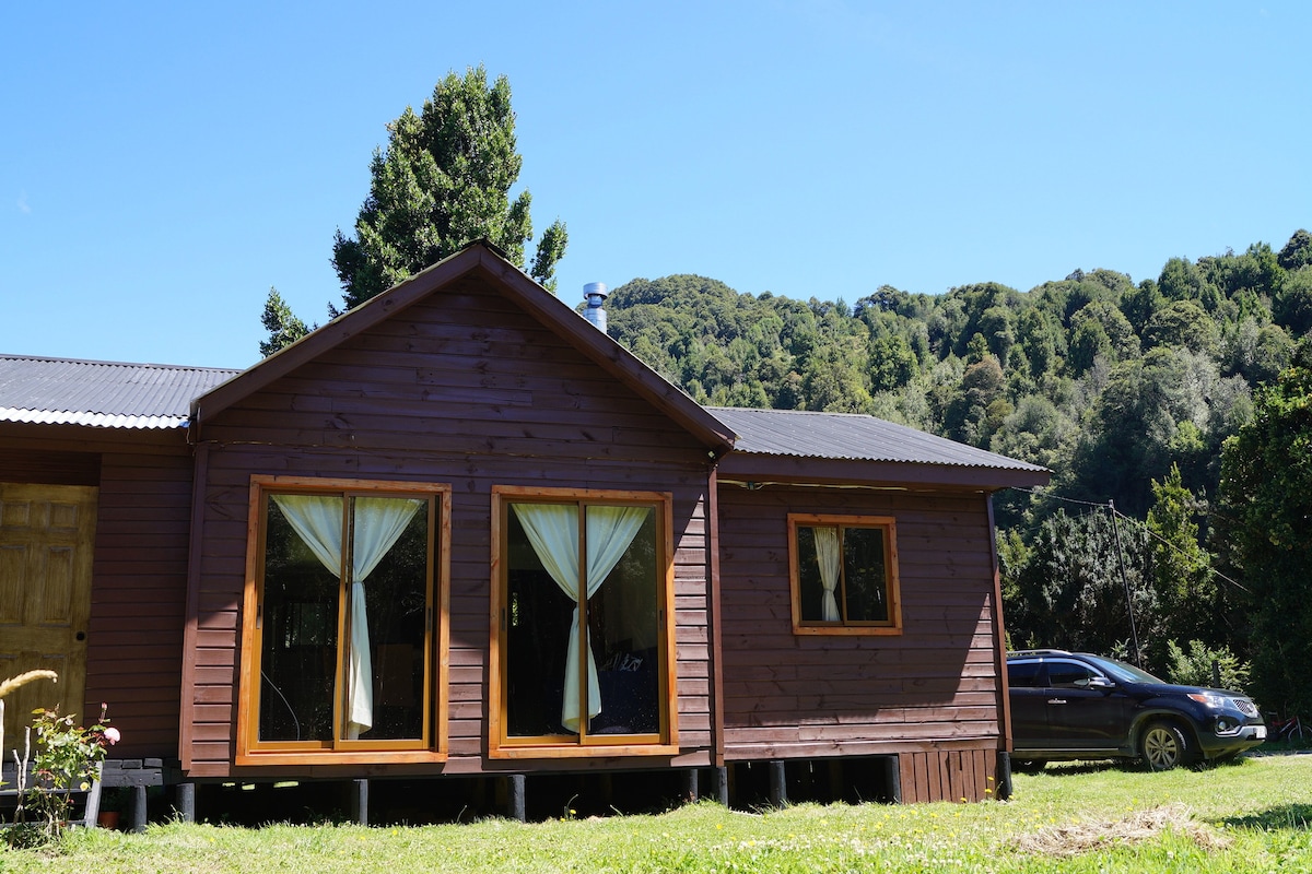 Cabaña recién construida sobre una loma pequeña, en plena selva patagónica, tipo bosque templado Valdiviano. Está ubicada a 100 metros de senda caminable a pie de última calle del pueblo. Permite una conexión profunda con la flora y fauna del lugar. Sitio preferente para la contemplación de aves de la zona y la ornitología especializada. Terreno sin vecinos inmediatos, colinda solo con selva tupida. A 15 minutos caminando de la playa central. La terraza mira al oeste con luz solar privilegiada.