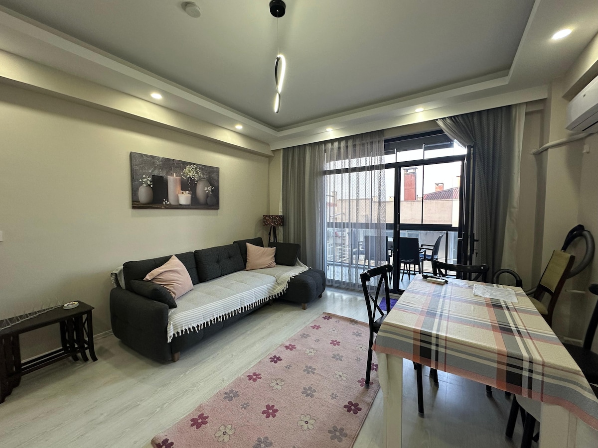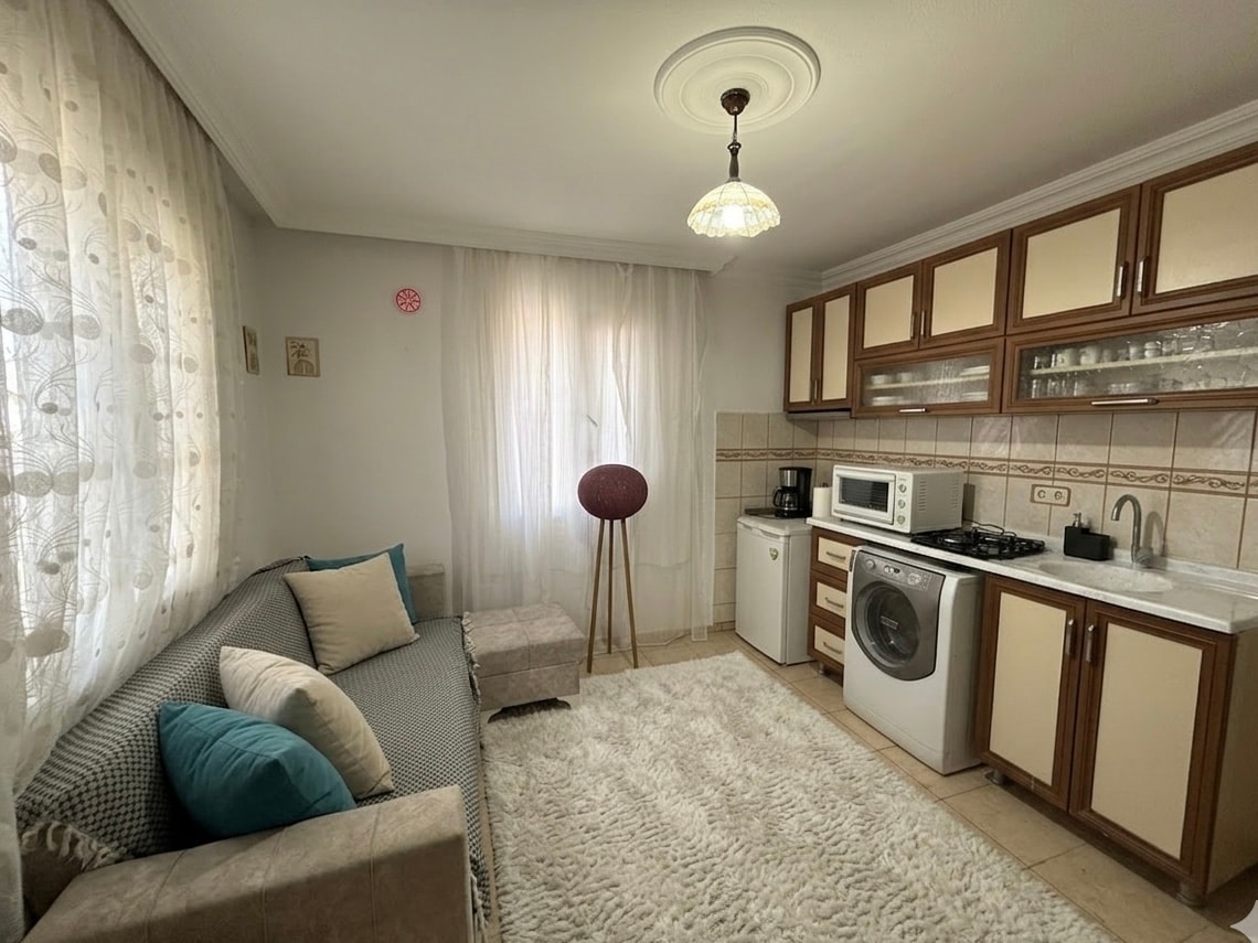 Sarımsaklı 2+1 房屋,带空调和花园,距离海边 150 米