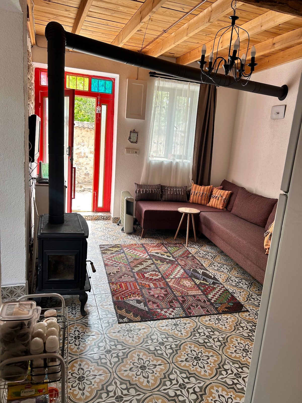 A private, well-equipped, hygienic terrace floor with sunset sea view, 100 meters from the sea. Stylish room with air conditioning, stylish and full of everything . Refrigerator, 2 TVs (there is Youtube, Netflix, in the room TV), Heating, Central Heating and Air Conditioning. There is a barbecue on the terrace floor that you can use whenever you want. Terrace Floor belongs entirely to size. Terrace floor and room doors have locks. There is also a lock on the exterior entrance door.