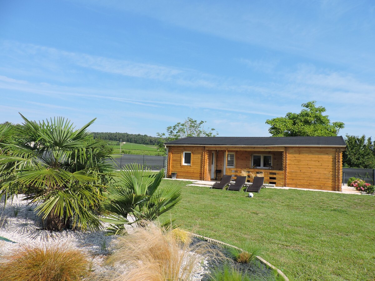 C'est un petit chalet de 60 m2 situé au cœur des vignes, dans un coin calme, proche de tous commerces, propice aux promenades à pied ou à vélo, à la découverte de châteaux et vignobles...il est situé derrière notre maison sur un terrain de 2000 m2, nous avons un petit chien très gentil qui aime les enfants.