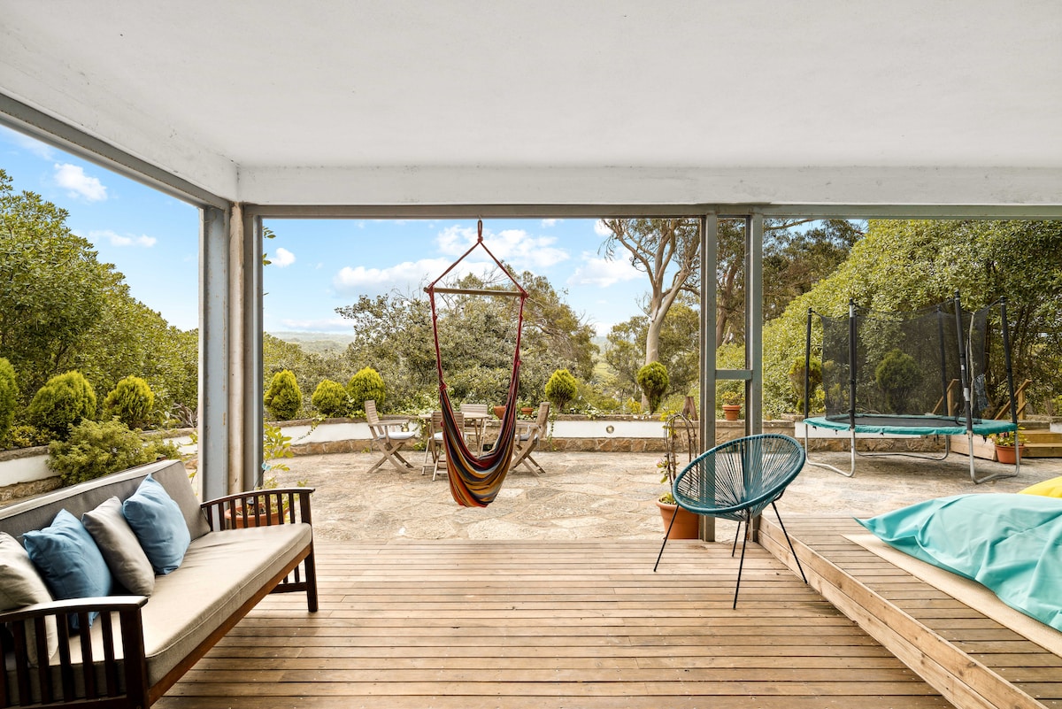 Casa da Encosta is located in the picturesque Aldeia do Penedo, on the hills of Sintra facing the Atlantic. The nearby beaches (Adraga, Praia Grande, Praia das Maçãs and others) are just 5 km away. This two bedroom house (plus a mezzanine) dates from the 1930’s and was passionately renovated in 2023 by Katrin Kaasa and Duarte Amaral Netto, your hosts. The house maintains the spirit of a cabin (low ceiling in the kitchen and some doors) but was carefully designed for comfort and stylish details.
