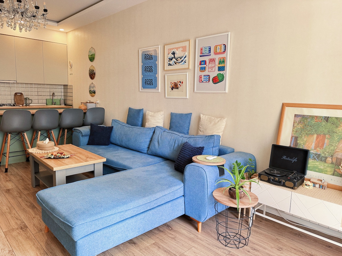 Bright and modern 68 m² apartment in central residential area Baku. Located in a modern and safe complex with 24/7 security. Only 7 minutes to the Old City and 8 minutes to Fountains Square on foot. Coffeeshops and restaurants nearby with a large supermarket in the building. Amenities Wi‑Fi, PS5, Smart TV, Apple TV, Monitor 2 air conditioners Japanese toilet seat with heating Coffee maker; airfryer, sandwich & popcorn maker Orthopaedic mattress & pillows Pots, pans, plates and cutlery