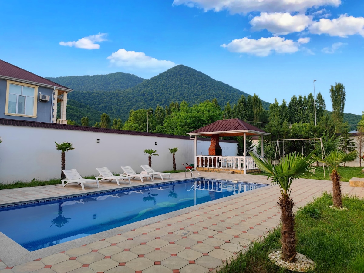 🏡 Welcome to Mountain View Villa Gabala – a stylish, family-friendly escape with stunning mountain views, a private pool, outdoor BBQ, and free parking. Enjoy a cozy open-concept interior with high ceilings, natural light, fast Wi-Fi, and all the comforts you need. Perfect for families, couples, or friends looking to relax or explore. Wake up in nature, unwind by the pool, and make memories under the stars.