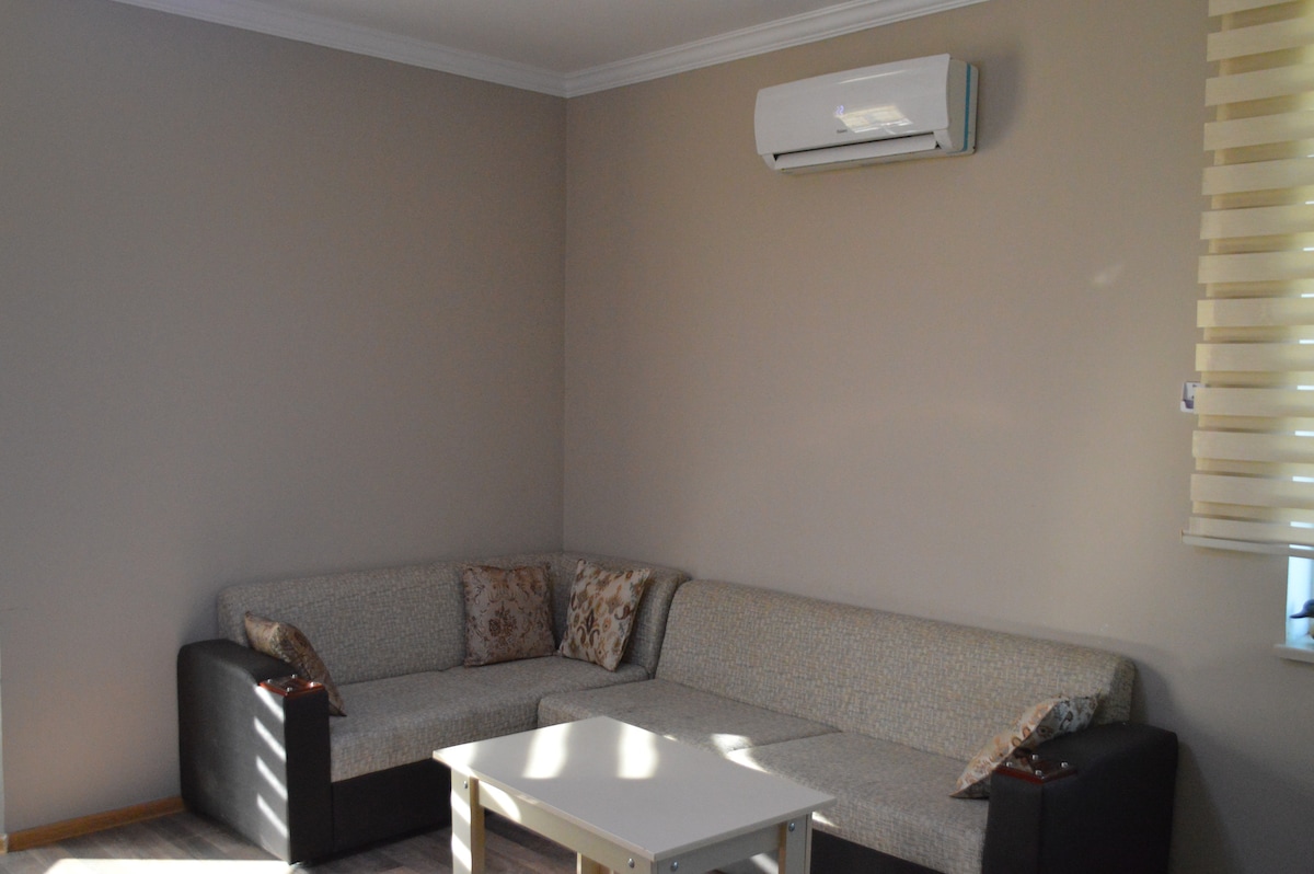 Relax with the whole family at this peaceful place to stay. 1 Bedroom, 1 Living Room, 1 Kitchen. Free Parking New furniture. Near Caspian sea ( first line ), Seaside Boulvard.