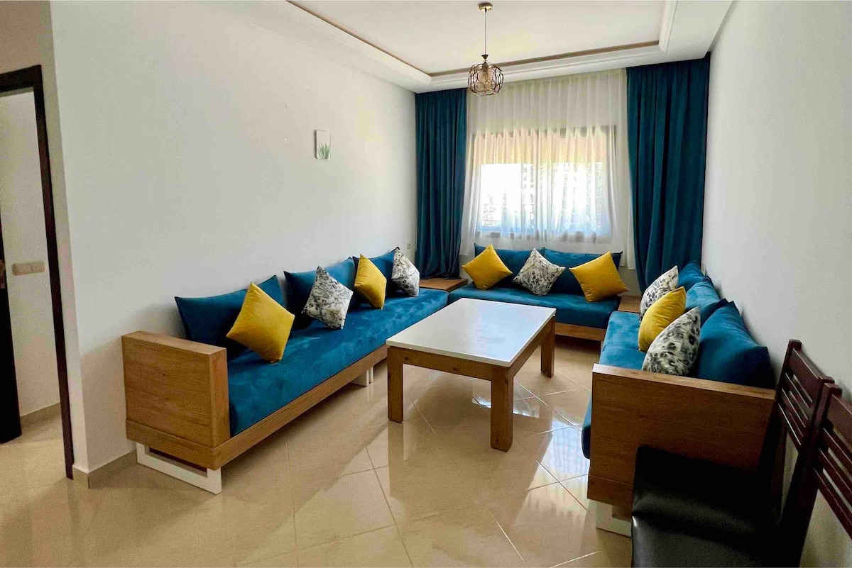 Martil Beach Escape – 1-Min Walk! YES: Hear waves. YES: Sip mint tea by the corniche. YES: Icy A/C & Netflix WiFi. Spacious 2BR with master bed, 2 singles, cozy living room, well-equipped kitchen, modern bath, fiber WiFi. Just 110m to Martil Beach! Start with crispy msemen, stroll the corniche, relax on your private shaded patio. Walk to cafés, fish grill, shawarma, shops. Walk Score: 100 – no car needed. Claim your Martil escape today!