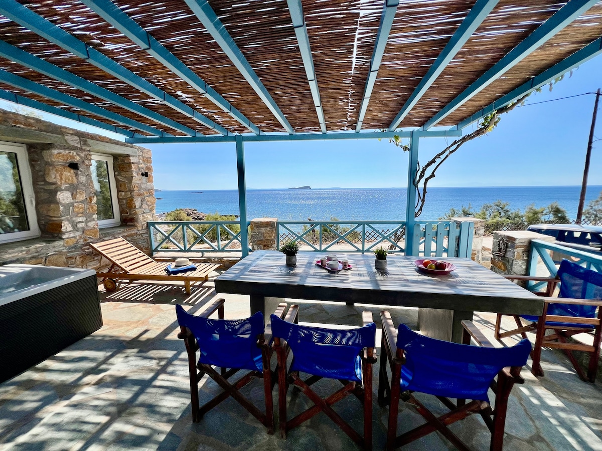 Located literally where the golden sand is caressed by the cool waves, on the beautiful serene beach of Fabrika on the southeast of Syros island, this villa awaits to offer you the very best of the famous Greek summer and hospitality. Nothing here can disturb your piece and quiet; from your morning swim in the magic blue sea just in front of your villa –accessed by your private entrance- to your afternoon aperitif on the veranda listening to the sound of the waves, let yourself free to dream.