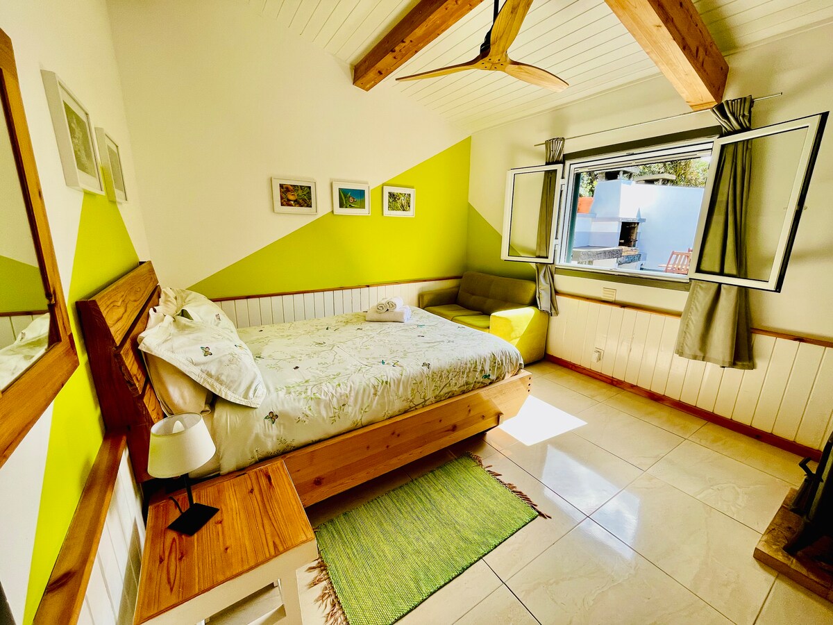 Bungalow dentro de propriedade privada com muito verde, sossego, conforto, podendo disfrutar da companhia dos nossos animais de estimação, pequenos animais inofensivos, dos cantos da natureza, da brisa nos arvoredos com privacidade e muito espaço. Localizado a 5 minutos de carro do centro das 3 cidades da ilha de São Miguel e a dois minutos da praia e zonas comerciais. Se gosta de uma real aventura segura no meio da natureza e, ao mesmo tempo, estar perto de todos os pontos de interesse.