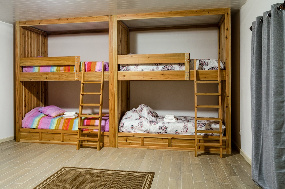 Possui três beliches, de duas camas cada, com capacidade para 6 hóspedes e está equipado com uma casa de banho, partilhada apenas com os hóspedes do quarto. Cada cama tem uma cortina individual uma luz de leitura e um cacifo privado. Cada hóspede tem ainda disponível tomadas de eletricidade e USB, bem como acesso à rede wifi de forma gratuita.