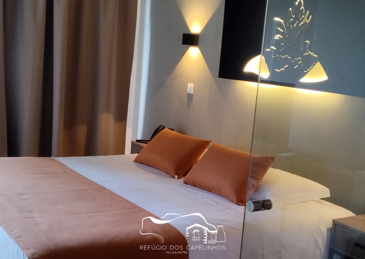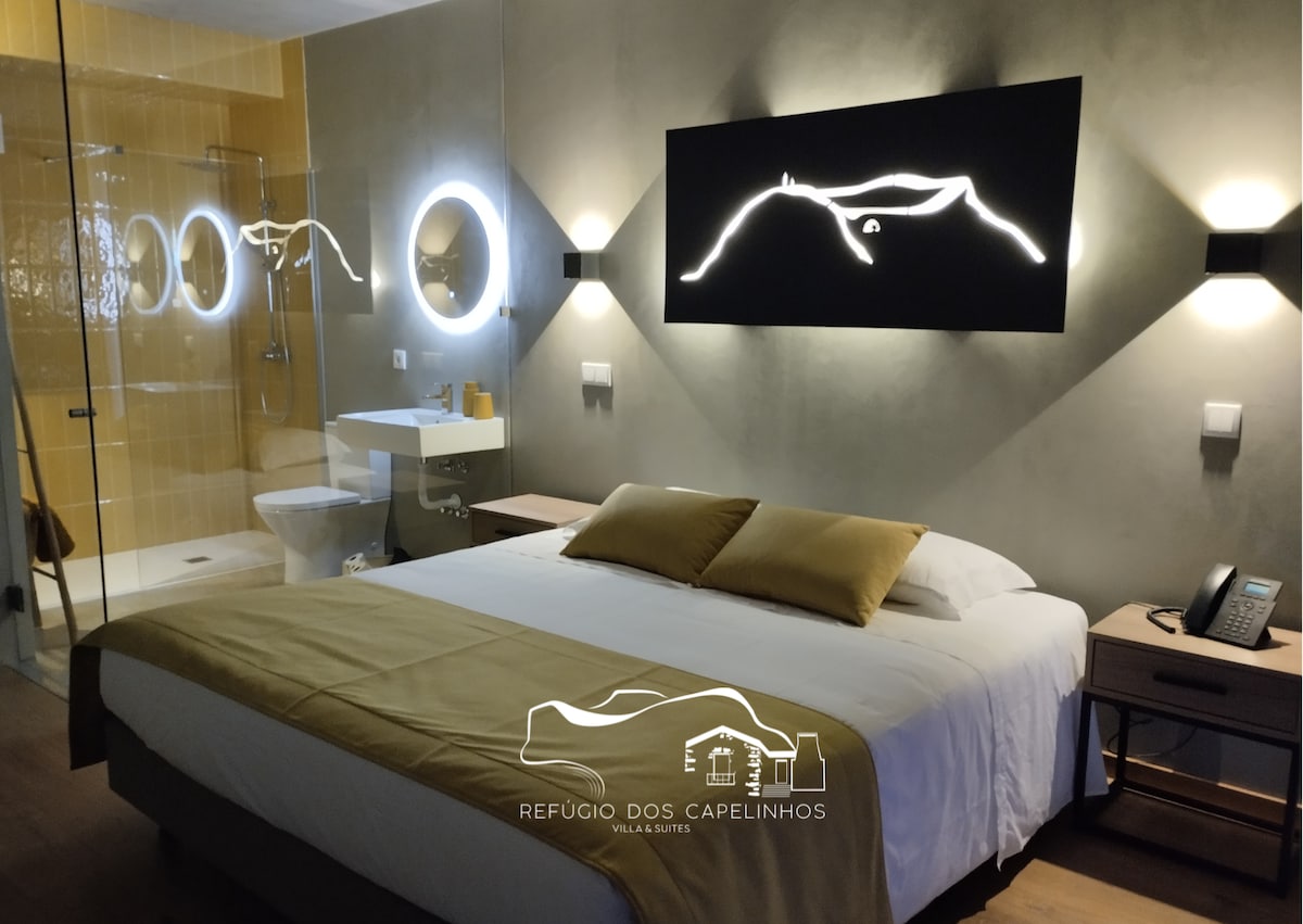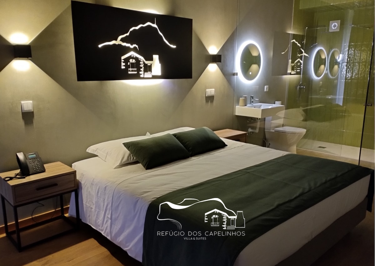 Absolutely stunning, this room with it's incredible 180º views over the Pico mountain and Faial Island. Even the private bathroom has views to the mountain! This luxury room is perfect for a romantic getaway in the beautiful island of Pico. The light that comes in from every corner, is perfect for creating amazing photography.