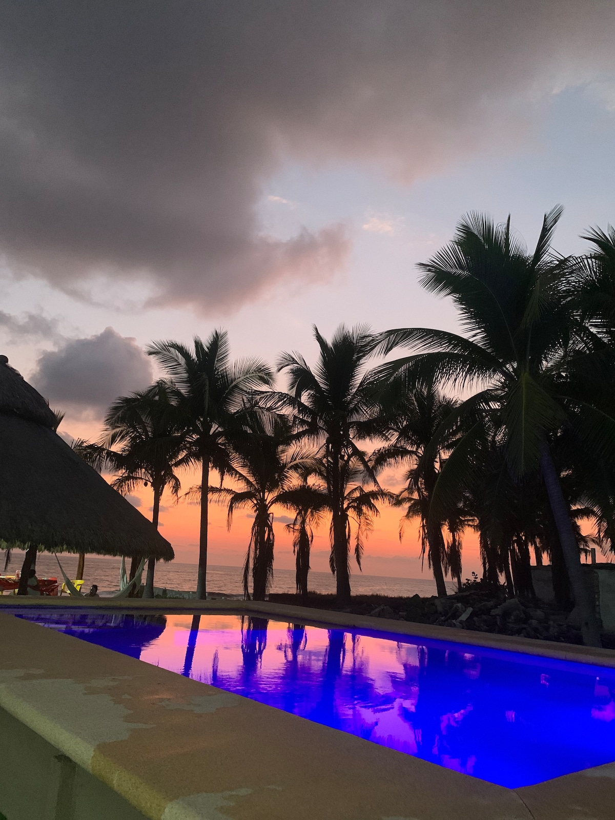 Relájate con toda la familia en este alojamiento donde la tranquilidad se respira. quinta en Playa las Peñitas, Marquelia Gro. Enfrente a la playa con excelente vista al mar con alberca propia ,palapa, asador, wifi, 6 recámaras con capacidad para 22 personas