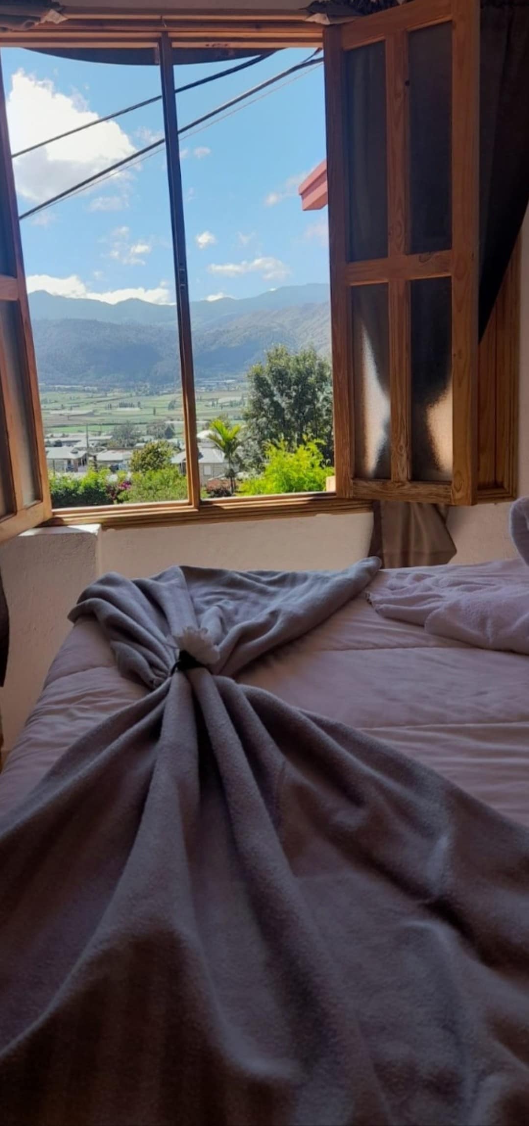 Disfruta de unos días de desconexión en las montañas en nuestro nuestra habitación 401, equipada con lo necesario para un cómodo descanso, cama queen, abanico de techo, frazada para las noches frías, black out para quienes les gusta descansar en total oscuridad.