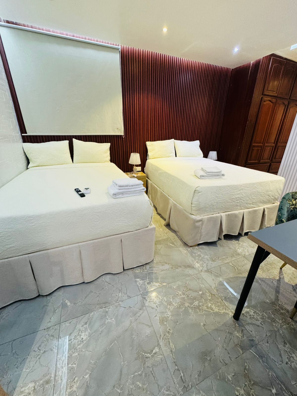 Nuestra habitación cuenta con una cómoda cama doble, equipada con ropa de cama suave y confortable. Además, la habitación está equipada con todo lo que necesitas para una estancia confortable, como un televisor smart tv, aire acondicionado, frigobar entre otros.