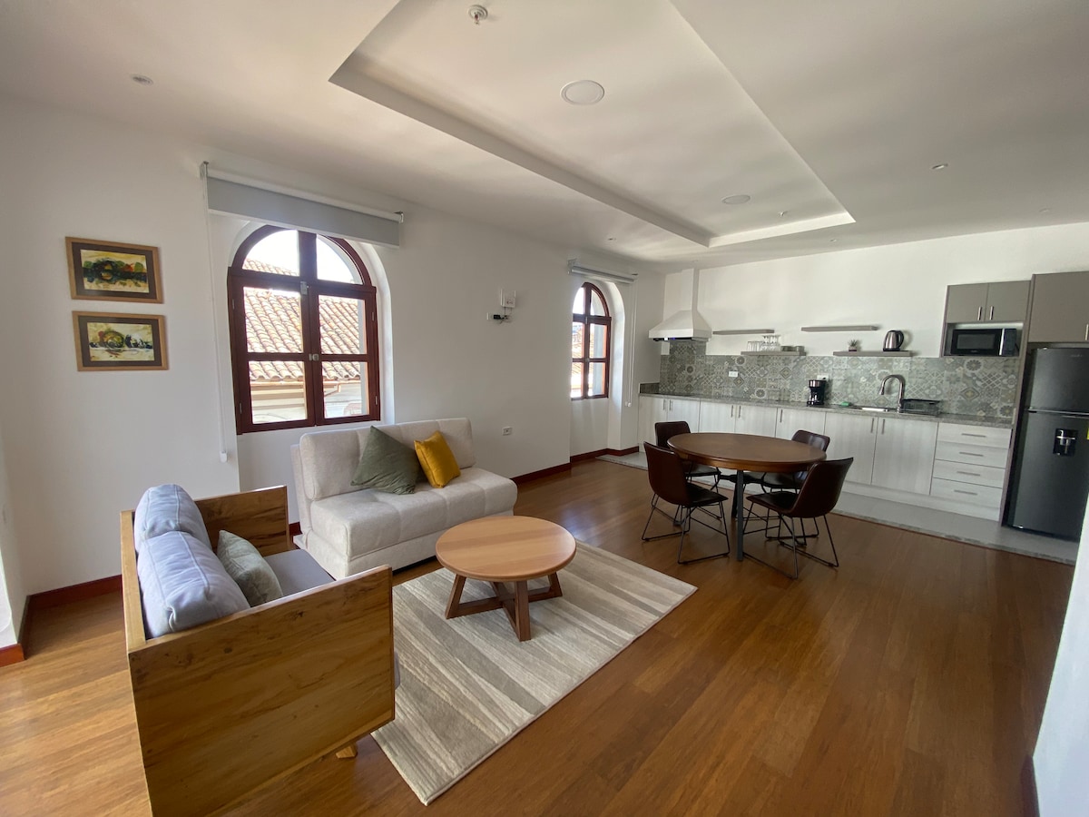Disfruta de una experiencia de lujo en este céntrico alojamiento. 🍃 Esta suite está ubicada en un departamento, en el 6to piso (tiene ascensor). 🍃 La suite es completamente privada y tiene una habitación + cocina + baño. 🍃 Adicionalmente, hay espacios comunes: dos terrazas desde las que se ven la Plaza de San Francisco y La Catedral de Cuenca.