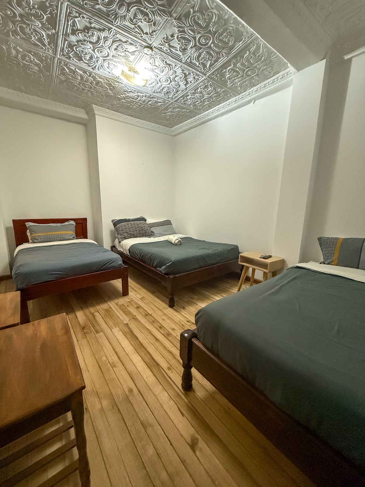Suite acogedora y bien equipada, ideal para una estadía cómoda y tranquila. Cuenta con dormitorio amplio, ropa de cama confortable, clóset con toallas, sala con sofá-cama cómodo, y kitchenette funcional con microondas, cafetera, nevera. Espacios limpios, iluminación cálida y acabados en madera que brindan una sensación de hogar. Ubicación estratégica, perfecta para descansar o trabajar con comodidad. Cerca del estadio, el centro histórico, el aeropuerto y plazas comerciales.