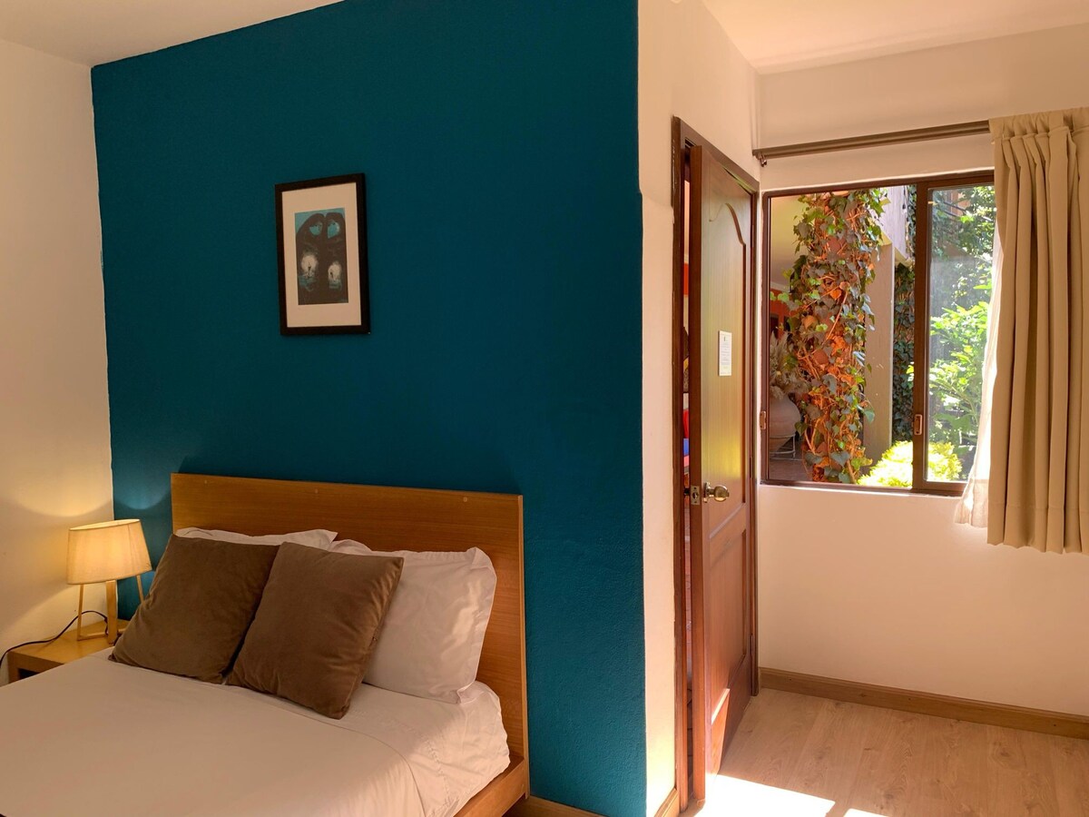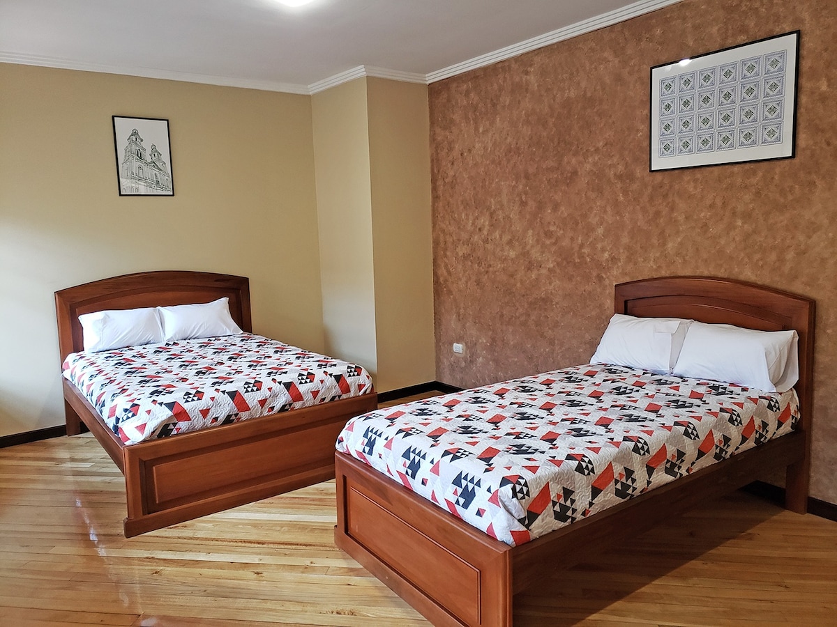 Hermosa habitación con baño compartido ubicada en el Hostal Casa Aida Luz, en pleno centro histórico de Cuenca, a solo una cuadra del Parque Calderón y de la icónica catedral.