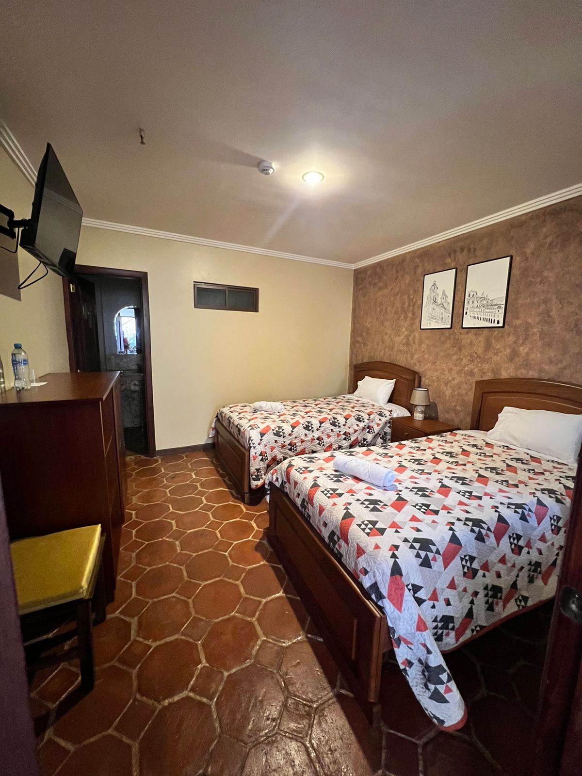 Somos un Hotel ubicado en el Centro Histórico de Cuenca, las habitaciones son privadas con baño propio, agua caliente, Tv (canales nacionales), Wifi y una estacion de té gratuita para los huespedes de 6pm a 10pm. En el Hotel se le brinda al huesped toda la información turistica y recomendaciones para que su estadia sea mucho mas agradable. Asi mismo directamente en el Hotel se les puede ayudar con el servicio de taxis o transporte privado.