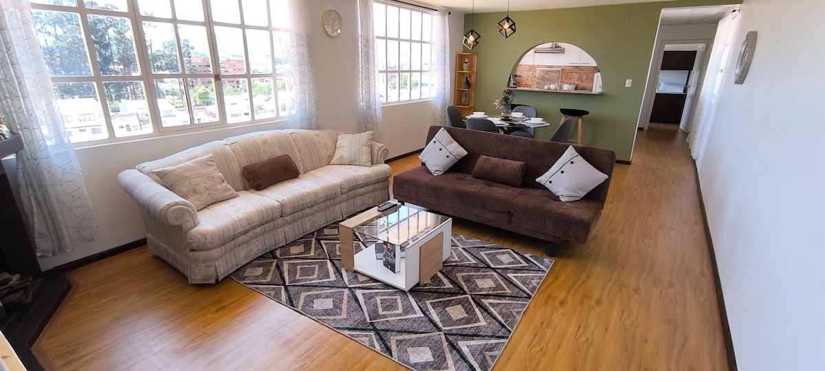 Enjoy a stylish, fully equipped space just 5 minutes from the historic downtown, Mount Sinai Hospital, and the beautiful Parque de la Madre. It's entirely amenity equipped—High-speed Wi-Fi (240 Mb), perfect for working remotely. Garage & elevator. It's just 5-min walk from downtown,Mother's Park, Alejandro Serrano Stadium, Monte Sinai, Supermaxi, banks, etc. Prepare to be captivated by stunning vistas of Cuenca's majestic mountains from the master bedroom. NO SUITABLE FOR CHILDREN or PETS.