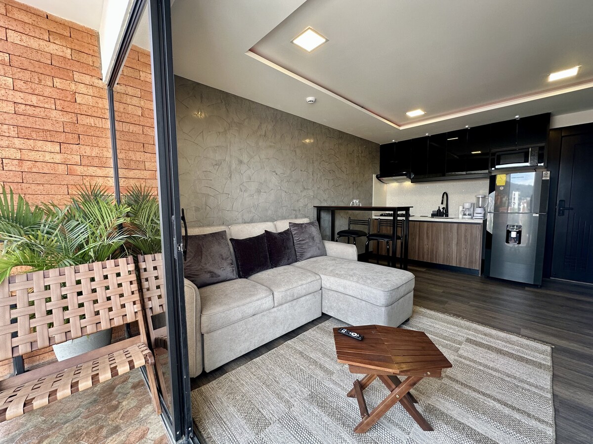 Enjoy a stylish, fully equipped space just 5 minutes from the historic downtown, Mount Sinai Hospital, and the beautiful Parque de la Madre. It's entirely amenity equipped—High-speed Wi-Fi (240 Mb), perfect for working remotely. Garage & elevator. It's just 5-min walk from downtown,Mother's Park, Alejandro Serrano Stadium, Monte Sinai, Supermaxi, banks, etc. Prepare to be captivated by stunning vistas of Cuenca's majestic mountains from the master bedroom. NO SUITABLE FOR CHILDREN or PETS.