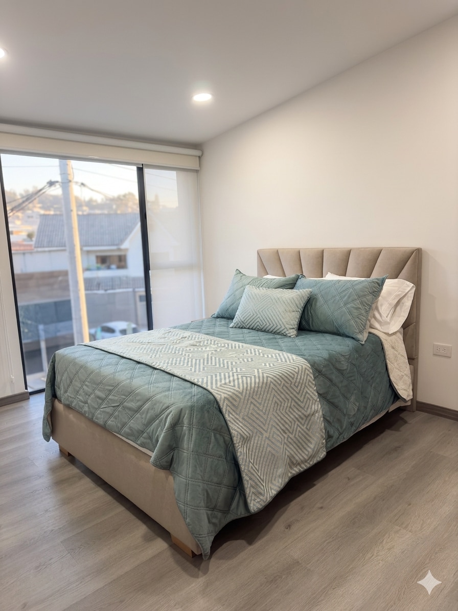 Enjoy this cozy 65 m² suite in a private gated community. It features a bedroom (double + single bed), living room with sofa bed, bathroom, fully equipped kitchen, and WiFi. 🐶 1 pet allowed (up to 20 kg, non-exotic) 🪴 Spacious terrace and garden 🧺 Laundry area 🚗 Free, secure, well-lit parking 📺 Smart TV with Netflix 👶 Baby crib available 📍 Minutes from Cuenca’s historic center, bus station, tram, shops, and restaurants