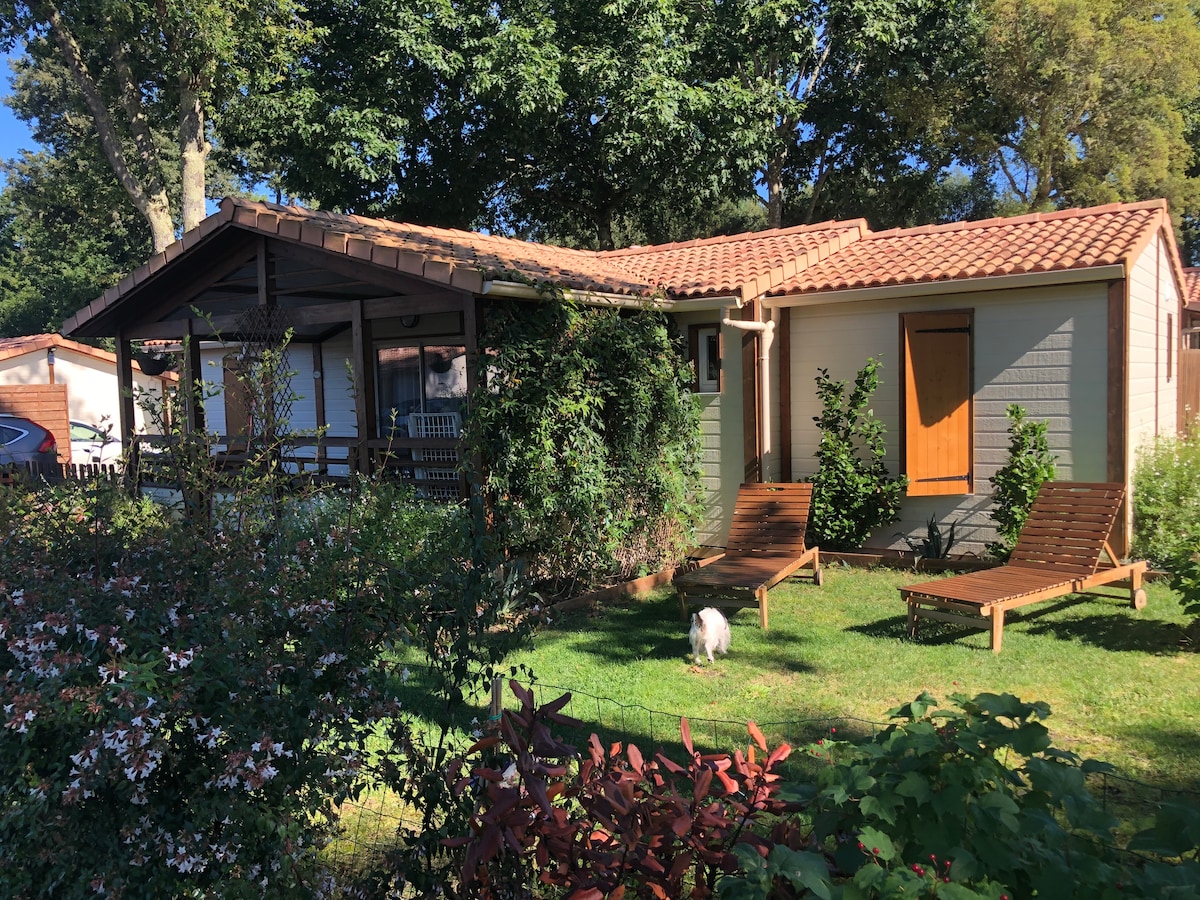 Maison bois mitoyenne climatisée de 60 m² au milieu de la forêt dans un petit hameau à 7 kms des plages. Cuisine équipée tout confort. Chambres équipées de moustiquaires et volets roulant Connexion wifi Terrasse bois exposée Ouest avec plancha Piste cyclable accessible par la forêt Plages, lacs et activités nautiques alentours 1 place de parking privative à proximité Pas d'animaux Linge inclus à partir de 7 nuits comprenant : draps, serviettes de toilette, linge de cuisine Location possible