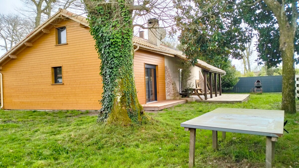 Maison neuve entourée de forêt à côté de la piste cyclable et plages de la côte landaise Elle se compose d’un salon avec cuisine américaine, de 3 chambres dont 1 suite parentale avec sdb et wc , pour finir une autre sdb et wc indépendant . Fibre internet 🛜 Pour l’extérieur une piscine pleins sud de 4 sur 8.5 m chauffée de avril au 11 novembre avec jardin paysager et 110m2 de terrasse en bois . Plage et golf de Moliets et maa à 10mn Vieux boucau 15mn Hossegor 28mn . Biarritz 50mn