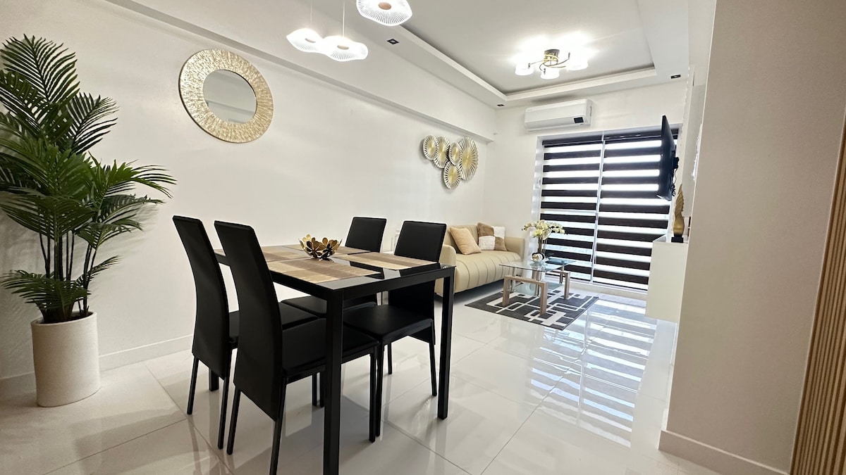 Welcome and enjoy a private space to call home during your stay while you visit the progressive city of Parañaque. Located only a few kilometers from the NAIA airport, Malls, Restaurants, and leisure places, perfect for weekend getaways, staycations, or work-from-home alternatives. Chill and relax while watching your favorite Netflix Series on our 49 Inch 4K Samsung Curve TV with Dolby Digital Samsung Soundbar system partnered with high-speed (200mbps fiber internet)to enjoy your experience.