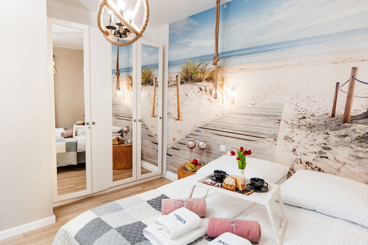 Enjoy a peaceful and stylish stay at this centrally-located place. A newly built, beautifully furnished apartment, perfect for a quiet stay in the heart of Gdańsk. Located on the greenest side of the city center, right next to Góra Gradowa. Although historical and cultural sights, shops, and restaurants are only a 10-15 min walk away, the area feels peaceful and secluded. The place offers a unique, cozy, and very comfortable design, perfect for a couple and a weekend escape.
