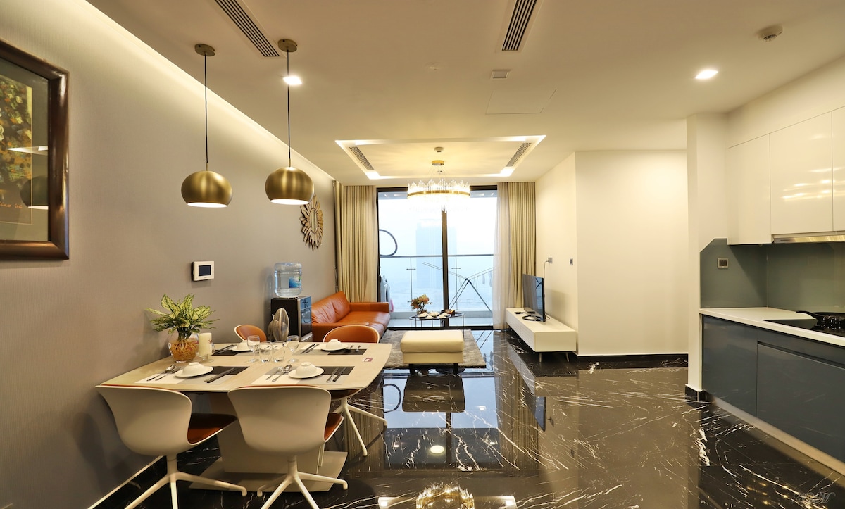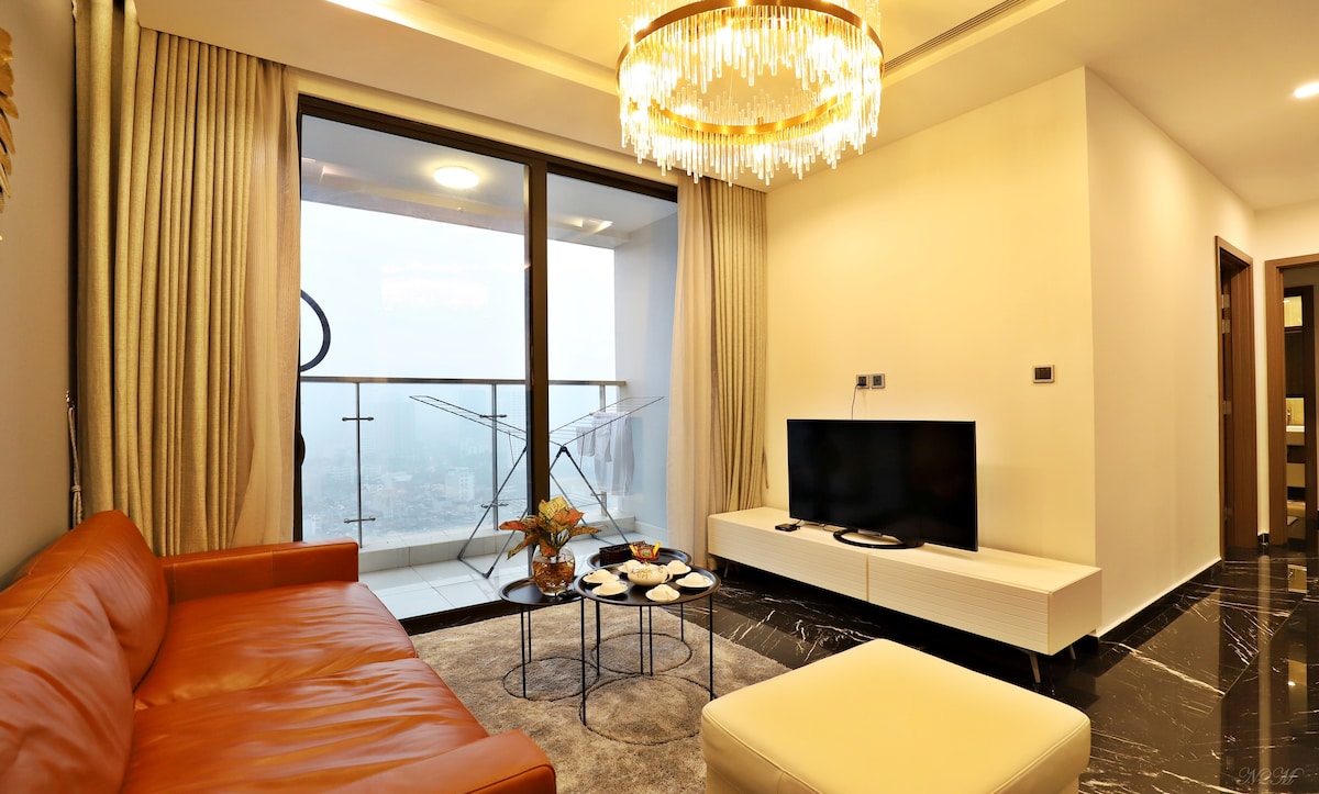 The apartment is located in Building of Vinhomes Metropolis with luxury furnitures, 80 sqm, 02 bedrooms and 02 king beds for a family. The building have Gym at 44th floor and swimming pool at 3Ath floor, garden BBQ at 3th floor too. In B2 and B1 floor, building have CGV cinema, Vinmart 1500m2 for shopping and so many coffee shop, restaurant for you can be happy here. Lotte building and Daewoo is very near Vinhomes metropolis. swimming pool fee : 200.000 vnđ/person ( you can use so many times)