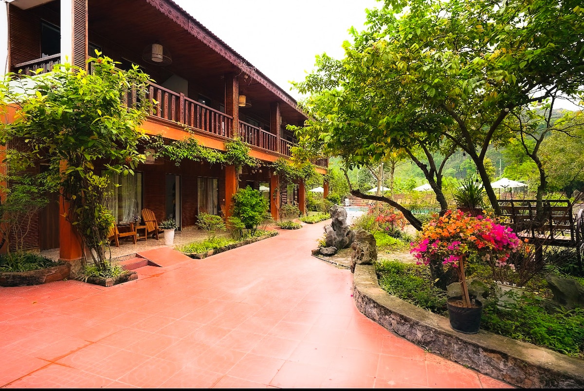 Located in the Trang An area, the bungalow in the beautiful garden and swimming pool is everything you need to enjoy your trip to Ninh Binh. Located by the beautiful Sao Khe River, close to any must-go destinations in Ninh Binh such as Hoa Lu Ancient Capitol (within 7 mins), Trang An boat trip (within 10 mins), Am Tien temple aka Tuyet Tinh Coc (within 5 mins), Hang Mua trekking point (within 10 mins), Tam Coc (15 mins). Only 15 minutes away from Ninh Binh City, it's a perfect getaway for you