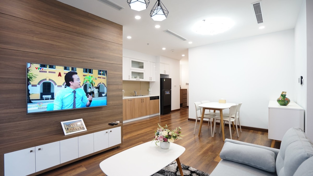 Căn hộ bao gồm 1 phòng ngủ sáng sủa với giường King size, phòng tắm khép kín có bồn tắm, khăn tắm và bàn chải đánh răng, sữa tắm, dầu gội. Phòng khách rộng rãi, có cửa sổ lớn với sofa, bàn trà, tivi 43 inch với hơn 50 kênh quốc tế. Nước Lavie sẽ được cung cấp hàng ngày trong các chai lớn có máy lọc nước. Nhà bếp cực kỳ tiện nghi với tất cả các bếp hiện đại, tủ lạnh lớn và bộ bàn ăn. Chúng tôi mong muốn mang đến sự tiện nghi, yên tĩnh cho bạn trong khoảng thời gian ghé thăm Hà Nội xinh đẹp.