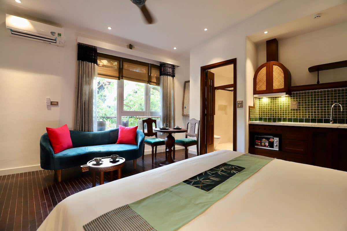 Family-friendly for 2-4 guests, offering a double bed and a versatile tatami mat. A private bathroom and a kitchen are available, along with shared laundry (wt dryer) facilities and a welcoming Vietnamese cafe downstairs to fuel your explorations. Immerse yourself in Hanoi's vibrant pulse! Hanoi's must-sees lie within a 10-minute stroll, from West Lake to Ho Chi Minh Mausoleum to the Old Quarter. Savor the symphony of life unfolding around you. This is your gateway to Hanoi's beating heart.